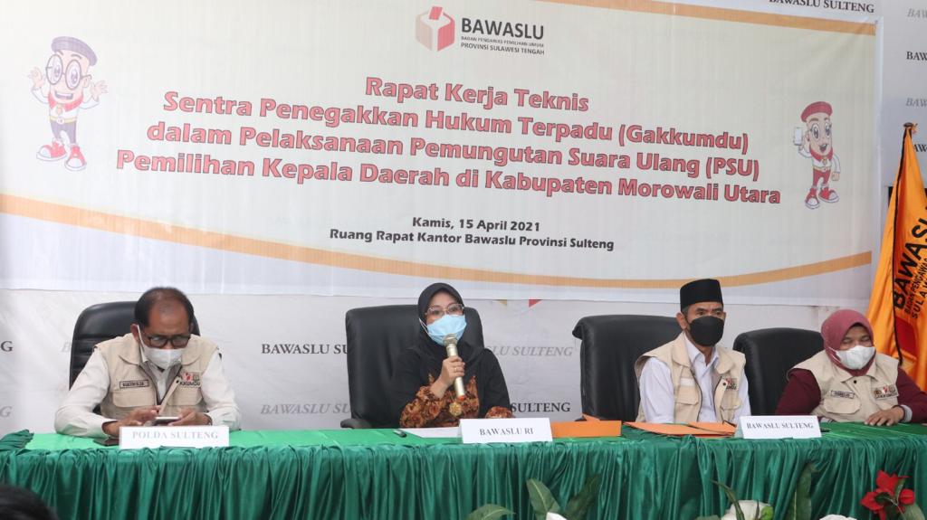 Palu, Badan Pengawas Pemilihan Umum – Anggota Bawaslu Ratna Dewi Pettalolo berharap Sentra Gakkumdu (Penegakan Hukum Terpadu) di Provinsi Sulawesi Tengah (Sulteng) dan Kabupaten Morowali Utara yang baru diaktifkan bisa bekerja maksimal. Menurutnya, pencegahan dan penindakan pelanggaran dalam pelaksanaan pemungutan suara ulang (PSU) untuk pilkada Morowali Utara dapat menghasilkan pemilihan berkualitas.