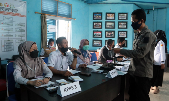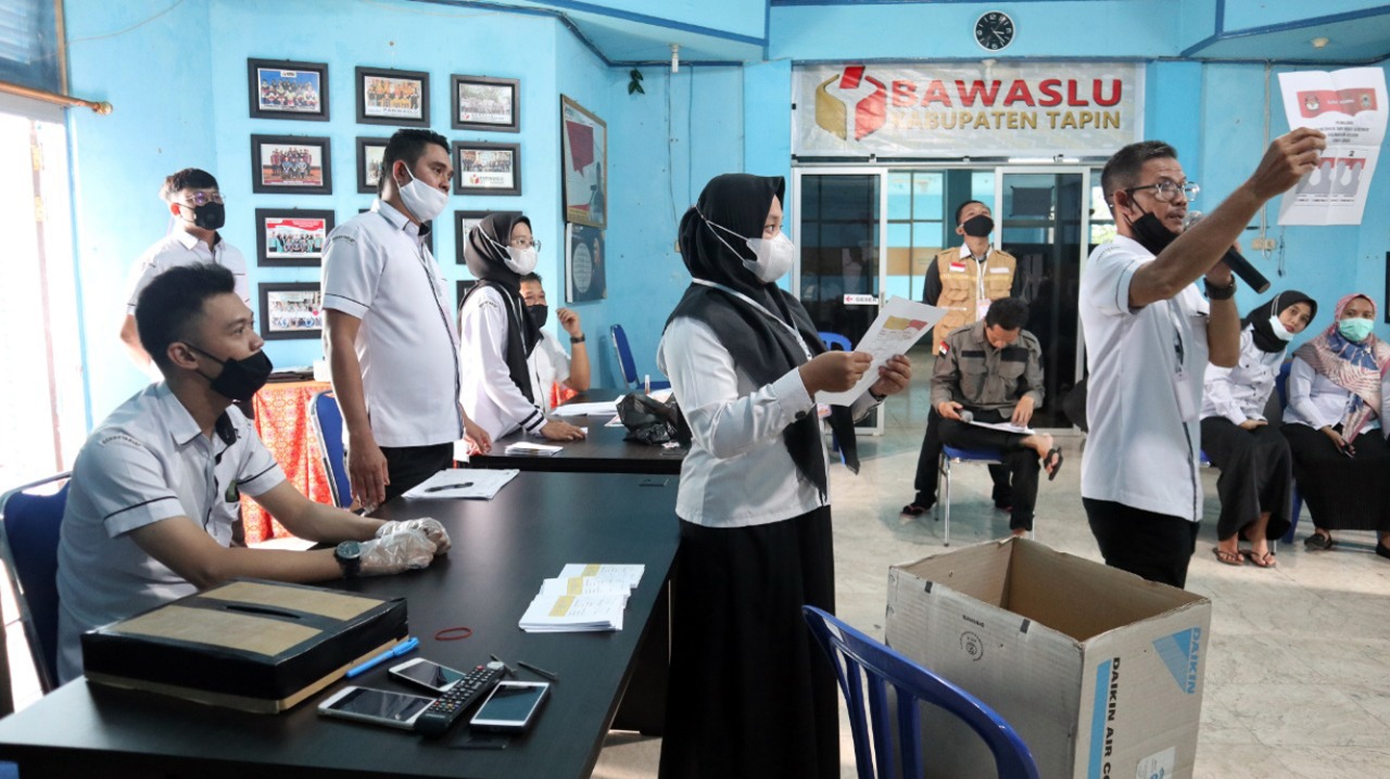 Tapin, Badan Pengawas Pemilihan Umum - Bawaslu Tapin melakukan simulasi pengawasan Pemungutan Suara Ulang (PSU) Pemilihan Gubernur dan Wakil Gubernur Kalimantan Selatan Tahun 2020. Simulasi ini berjalan lancar dengan menerapkan protokol kesehatan (prokes) covid-19 serta Pengawas Tempat Pemungutan Suara (PTPS) memahami kerja-kerja pengawasan pemungutan suara dengan baik.