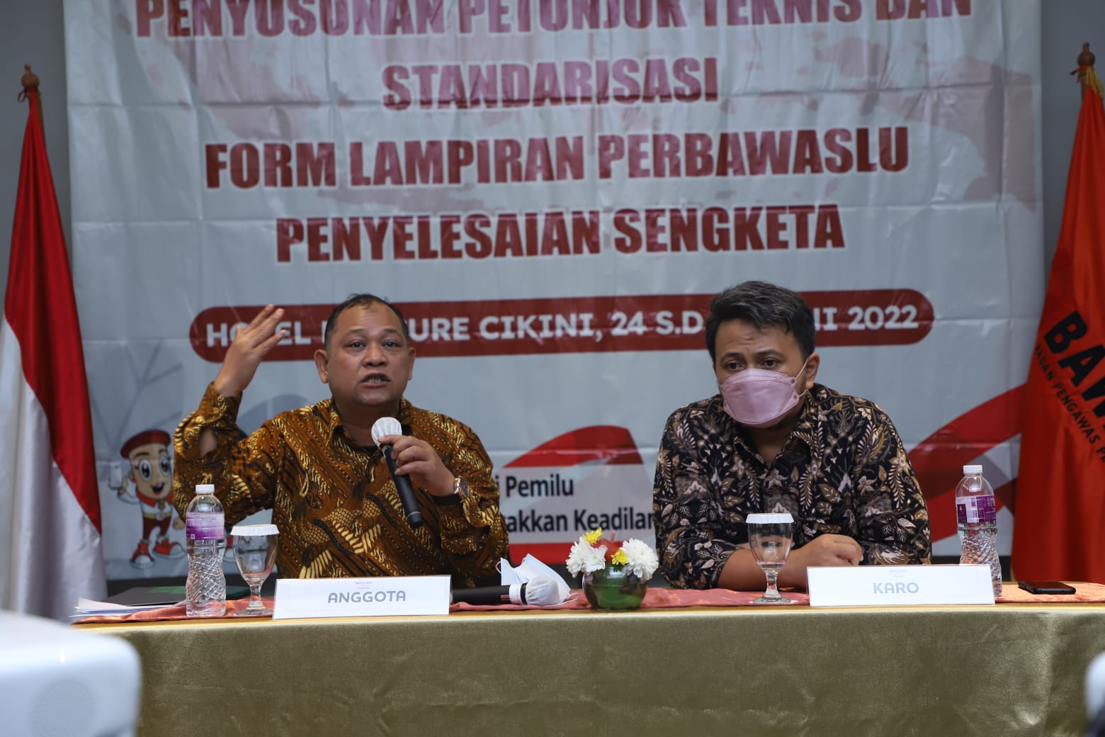 "Saya ingin (bagian) Sengketa yang paling siap, mulai Perbawaslunya, petunjuk teknisnya, SOP, putusan adjudikasi, putusan mediasi, format pengawasan, format pencegahan kita yang paling siap," cetus Totok dalam kegiatan Penyusunan Petunjuk Teknis dan Standarisasi Form Lampiran Perbawaslu Penyelesaian Sengketa di Jakarta, Jumat (24/6/2022).