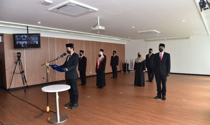 Sekjen Bawaslu Gunawan Suswantoro melantik 21 pejabat fungsional di lingkungan Bawaslu pusat dan Bawaslu Provinsi di lantai 5 Gedung Bawaslu, Jakarta, Jumat (18/6/2021)/foto: Publikasi dan Pemberitaan Bawaslu RI