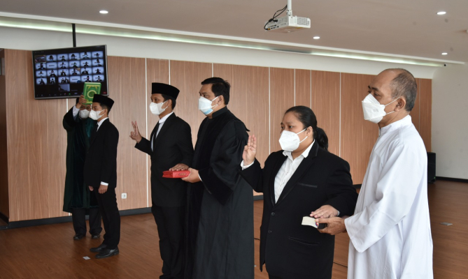 Jakarta, Badan Pengawas Pemilihan Umum- Sekretaris Jenderal Bawaslu Gunawan Suswantoro melantik 28 Pegawai Negeri Sipil (PNS) Bawaslu menjadi pejabat fungsional di lingkungan Bawaslu RI secara hybrid, Selasa (15/2/2022).