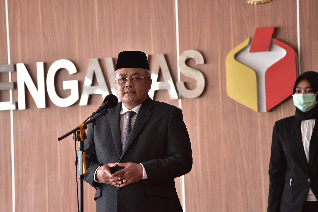 Sekjen Bawaslu Gunawan Suswantoro saat melantik 76 pejabat administrator dan pejabat fungsional lingkungan Bawaslu di Gedung Bawaslu, Jakarta, Senin 5 April 2021/Foto: Humas Bawaslu RI