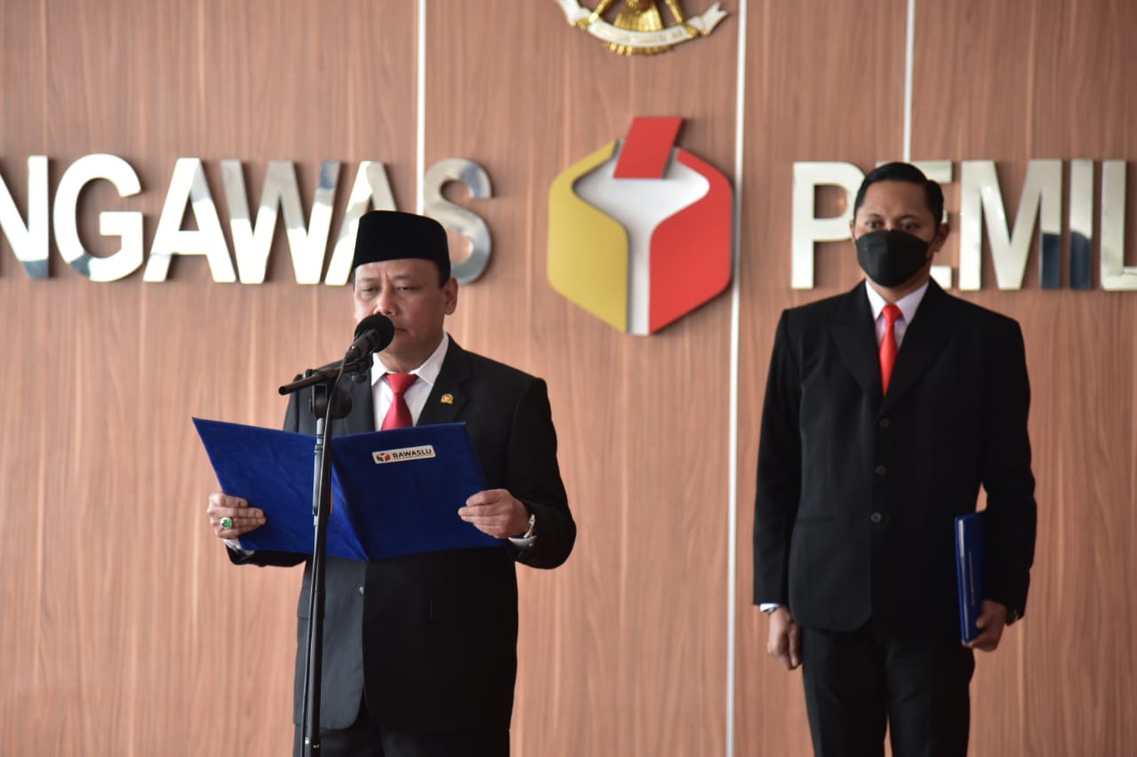 Ketua Bawaslu Abhan saat membacakan surat keputusan pelantikan anggota Bawaslu Kabupaten/Kota di Gedung Bawaslu, Jakarta, Senin 26 April 2021/Foto: Humas Bawwaslu RI