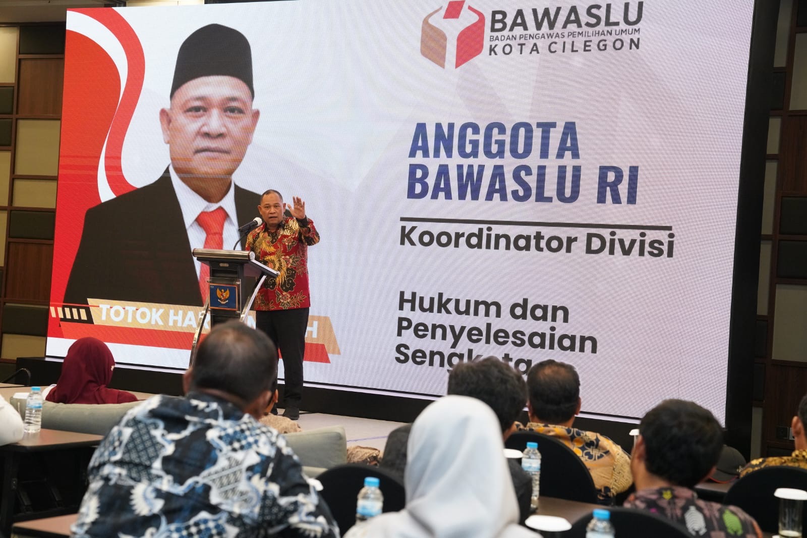 Anggota Bawaslu Totok Hariyono saat membuka Penguatan Kapasitas Aparatur Pengawas Pemilu Dalam Penanganan Penyelesaian Sengketa Proses Pemilihan 2024, di Kota Cilegon, Provinsi Banten, Kamis, (12/9/2024).