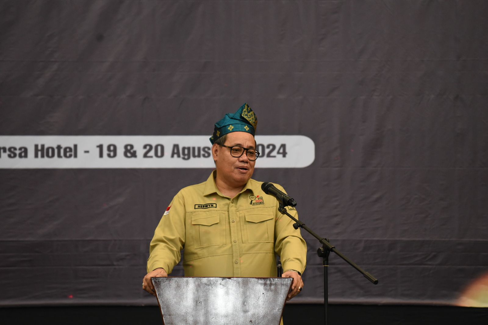Anggota Bawaslu Herwyn JH Malonda berikan arahan dalam Penguatan Kapasitas Aparatur Pengawas Pemilu Bagi Bawaslu Kabupaten/Kota serta Panwascam Se-Riau untuk Pemilihan 2024, di Riau, Selasa (20/8/2024).