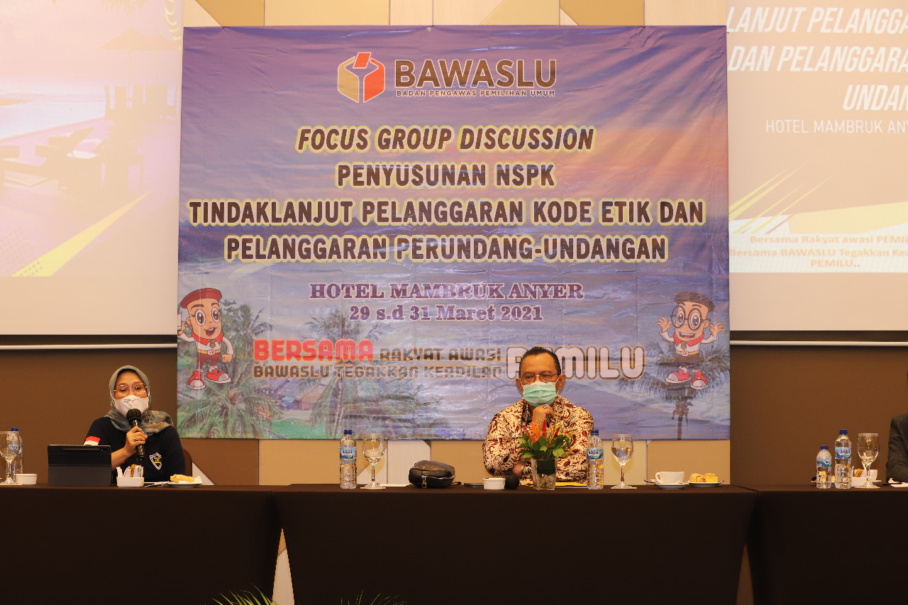 Anggota Bawaslu Ratna Dewi Pettalolo memberikan arahan dalam FGD Penyusunan NSPK Tindaklanjut Pelanggaran Kode Etik dan Pelanggaran Perundang-undangan, di Banten, Selasa (30/3/2021)/foto: Bhakti Satrio (Humas Bawaslu RI).