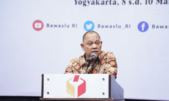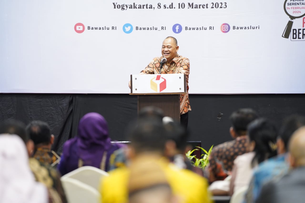 Anggota Bawaslu Totok Hariyono saat membuka Rapat Koordinasi Nasional Strategi dan Mekanisme Pengawasan Pencalonan Perseorangan Bakal Calon Anggota DPD dan Pemutakhiran DPT Pemilu 2024 di Yogyakarta, Rabu (8/3/2023)