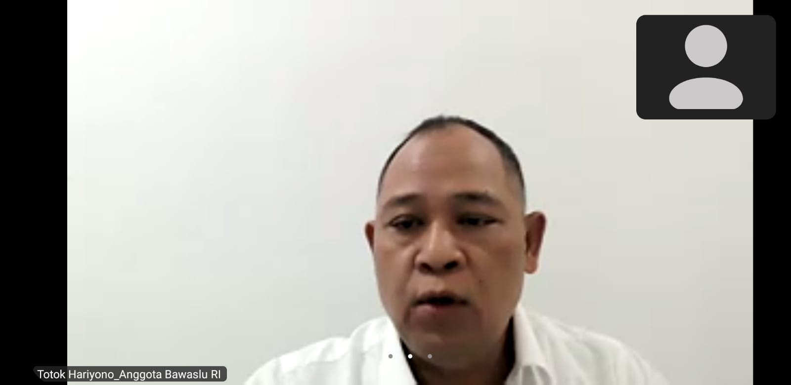 Anggota Bawaslu Totok Hariyono saat Rapat Pengawasan Tahapan Pencalonan Anggota DPR, DPRD Provinsi, dan DPRD Kabupaten/Kota secara virtual, Senin (1/5/2023).