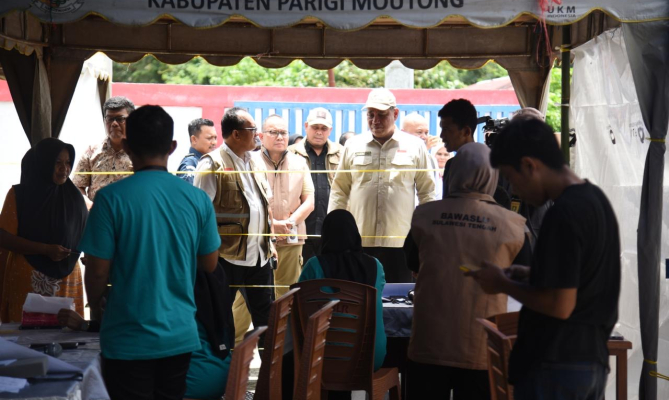 Kabupaten Parigi Moutong, Badan Pengawas Pemilihan Umum- Anggota Bawaslu Herwyn JH Malonda mensupervisi pengawasan pemungutan suara ulang (PSU) pasca-putusan Mahkamah Konstitusi (MK) pada Pemilihan Bupati dan Wakil Bupati Parigi Moutong 2024, Sulawesi Tengah (Sulteng). Di salah TPS yang dikunjungi, dia memastikan penghuni Lapas Kelas III Parigi yang terdaftar bisa mendapatkan hak pilihnya.