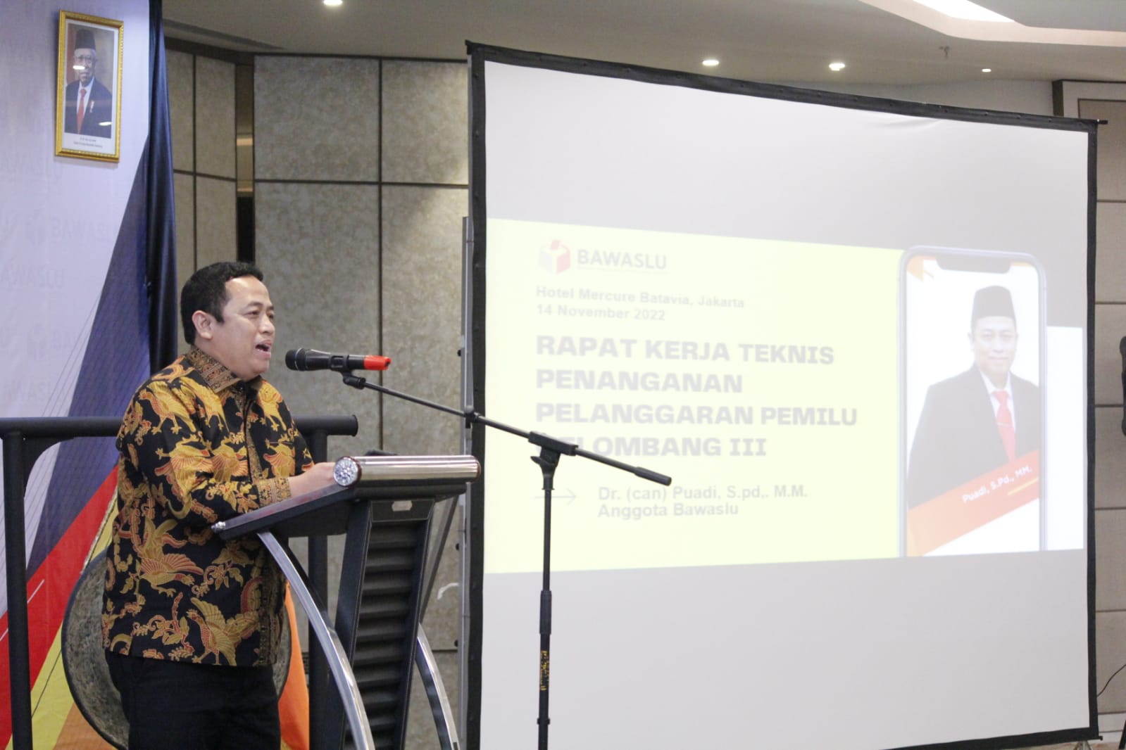 Puadi menegaskan agar para pengawas pemilu dalam melaksanakan tugas dan wewenang sesuai dengan aturan yang berlaku. Ini menurutnya dalam rangka efektifitas dan berkepastian hukum.