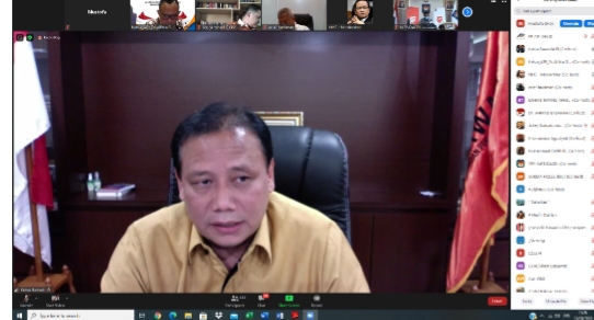 Ketua Bawaslu Abhan menjadi narasumber dalam acara webinar nasional bertema Visi Negara Kesatuan Republik Indonesia melalui Pemilu dan Pilkada, di Jakarta, Senin (31/8/2020). Foto :Humas Bawaslu RI