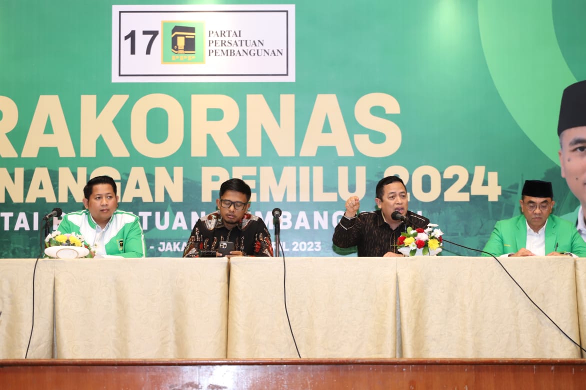 Anggota Bawaslu Puadi saat menjadi narasumber Rapat Koordinasi Nasional Lajnah Penenangan Pemilu yang diselenggarakan Partai Persatuan Pembangunan (PPP) di Jakarta, Selasa (11/4/2023)