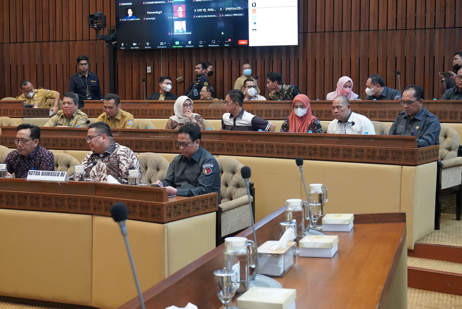 Ketua dan Anggota Bawaslu RI saat RDP bersama Komisi II DPR RI, Kemendagri, KPU, dan DKPP di Gedung DPR RI, Senin (6/2/2023)