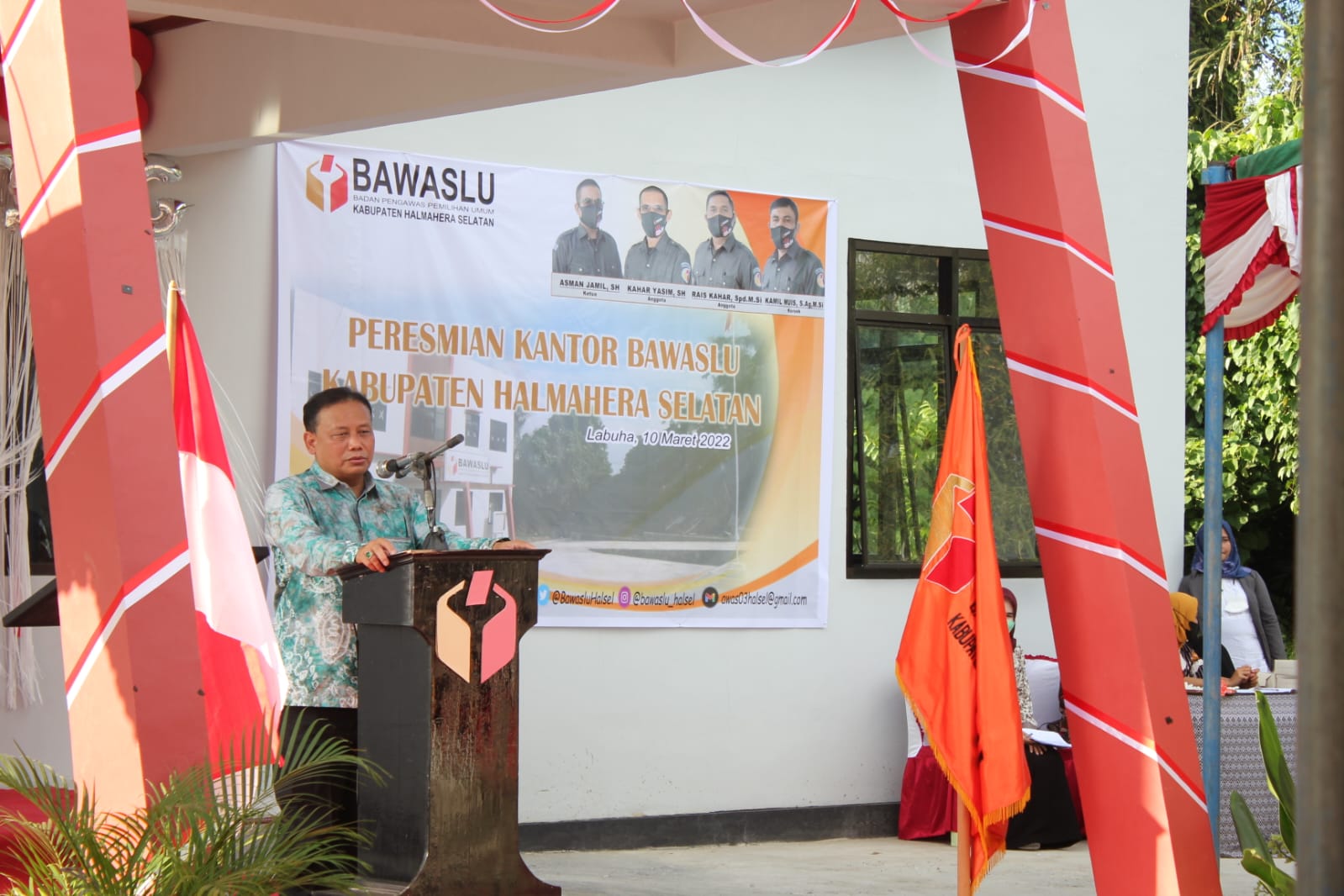 Ketua Bawaslu Abhan saar meresmikan kantor Bawaslu Halmahera Selatan, Kamis (10/3/2021).