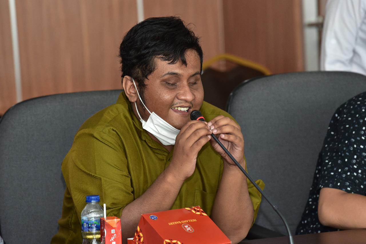 Perwakilan Perkumpulan Penyandang Disabilitas Indonesia (PPDI) Rizki Fadilah saat menyampaikan pandangannya dalam audiensi PPDI di Kantor Bawaslu, Jakarta, Rabu (8/6/2022)/foto: Publikasi dan Pemberitaan Bawaslu
