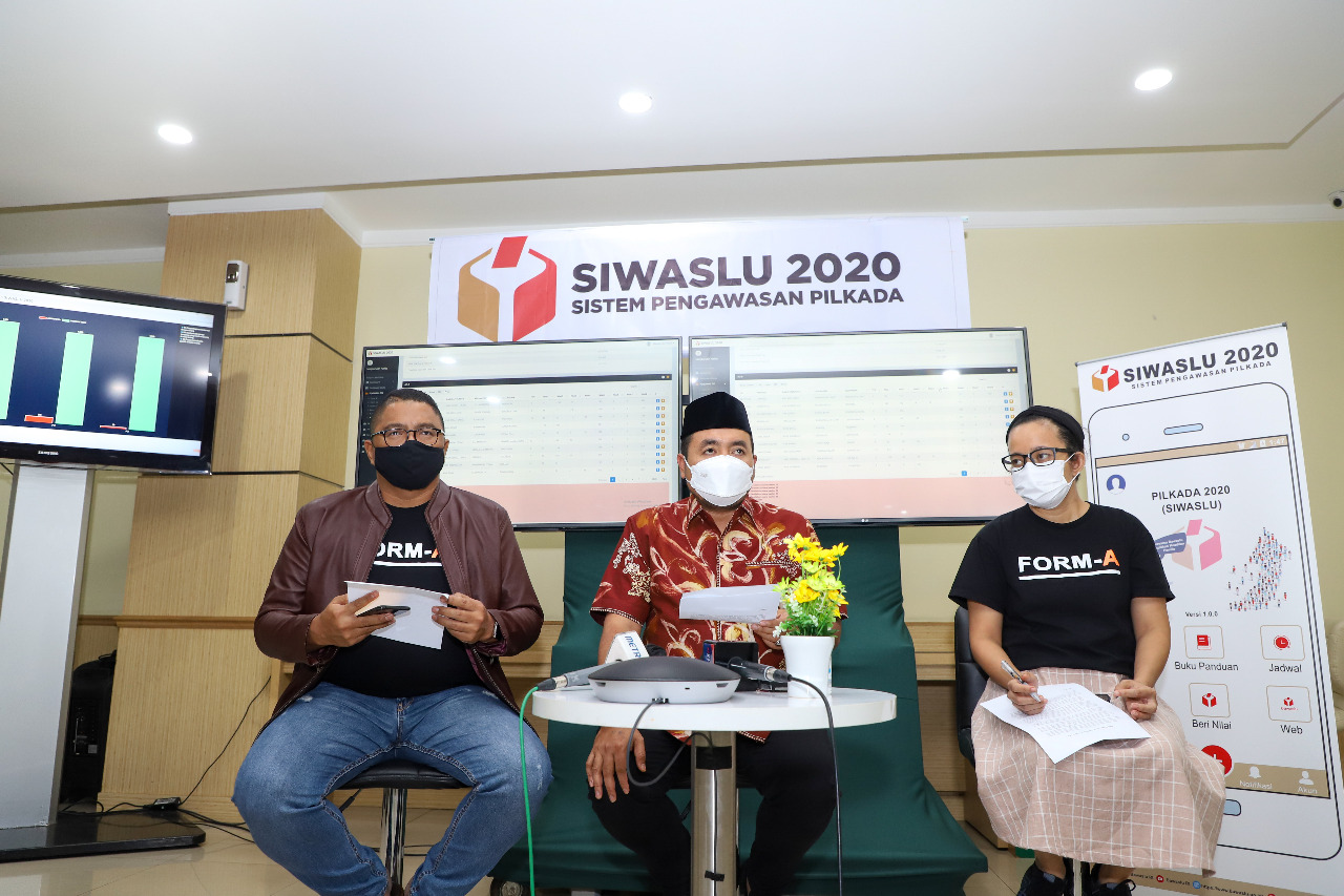 Anggota Bawaslu Fritz Edward Siregar (kiri) bersama Anggota Bawaslu M. Afifuddin (tengah) merilis hasil pengawasan pemungutan dan penghitungan suara di Media Center Bawaslu Jakarta, Rabu (9/12/2020)/foto: Bhakti Satrio (Humas Bawaslu RI).