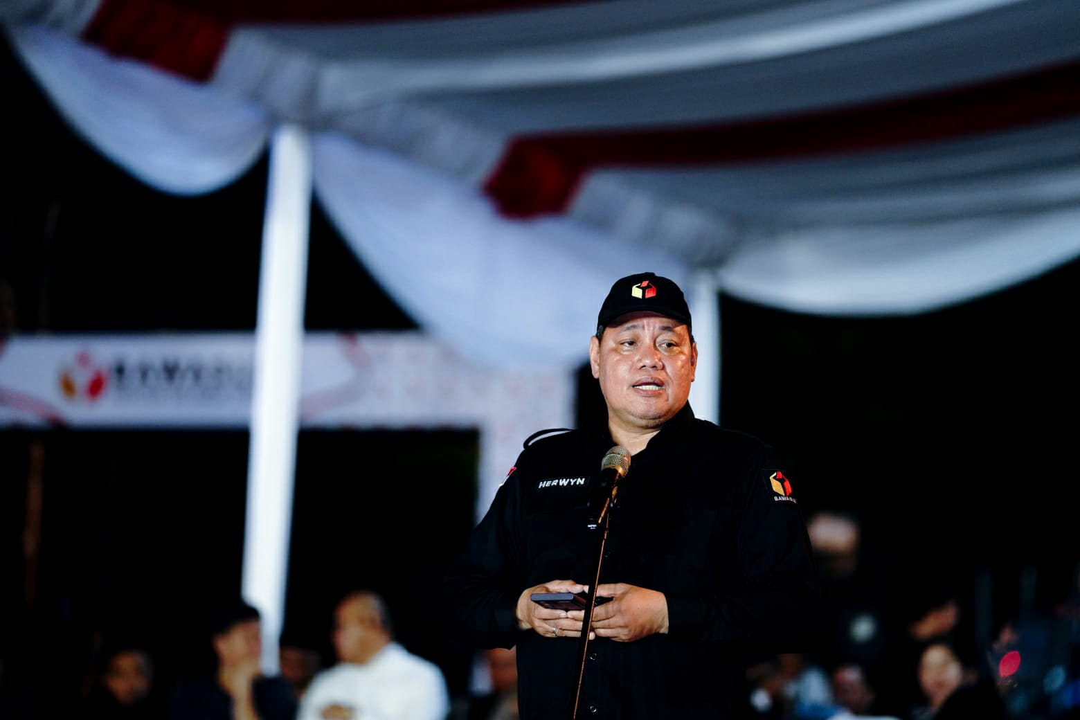 Anggota Bawaslu Herwyn JH Malonda saat memimpin Apel Siaga Pengawasan Masa Tenang dan Pemungutan Suara di Kota Manado, Sabtu (24/11/2024) malam.