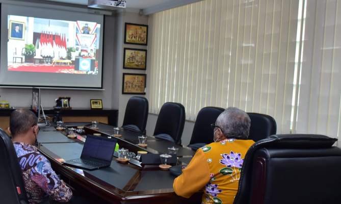 Jakarta, Badan Pengawas Pemilihan Umum - Sekretaris Jenderal Bawaslu Gunawan Suswantoro didampingi Kepala Biro Perencanaan dan Organisasi Ferdinand Eskol Tiar Siraid menghadiri Musyawarah Perencanaan Pembangunan Nasional (Musrebangnas) melalui daring, Selasa 4 Mei 2021.