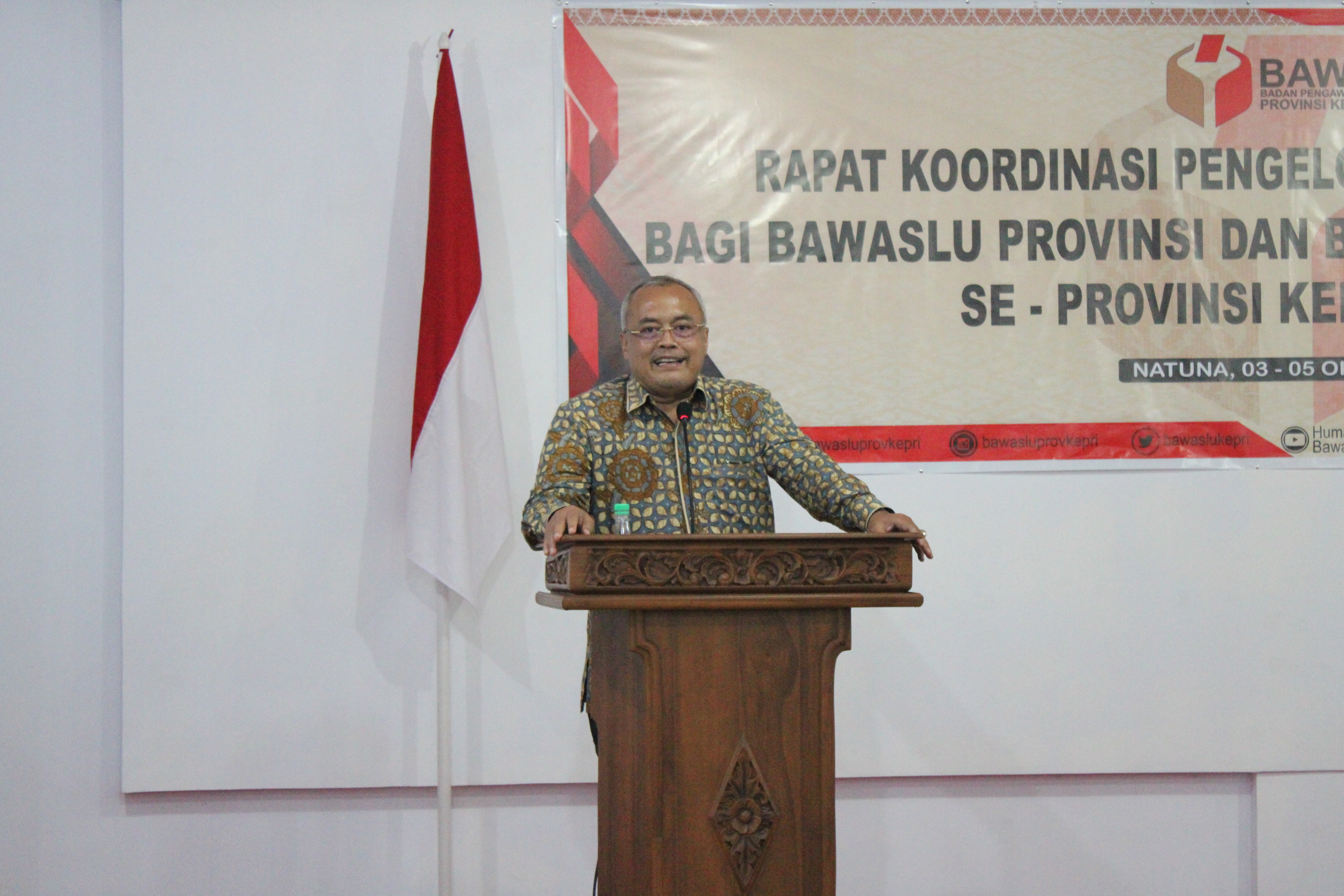 Sekretaris Jenderal Bawaslu RI Gunawan Suswantoro dalam Rapat Koordinasi Pengelolaan Anggaran Hibah Bagi Bawaslu Provinsi Kepulauan Riau dan Bawaslu Kabupaten/Kota se-provinsi Kepulauan Riau (Kepri), Kabupaten Natuna, 3/10/2020