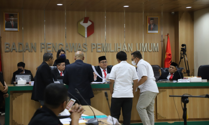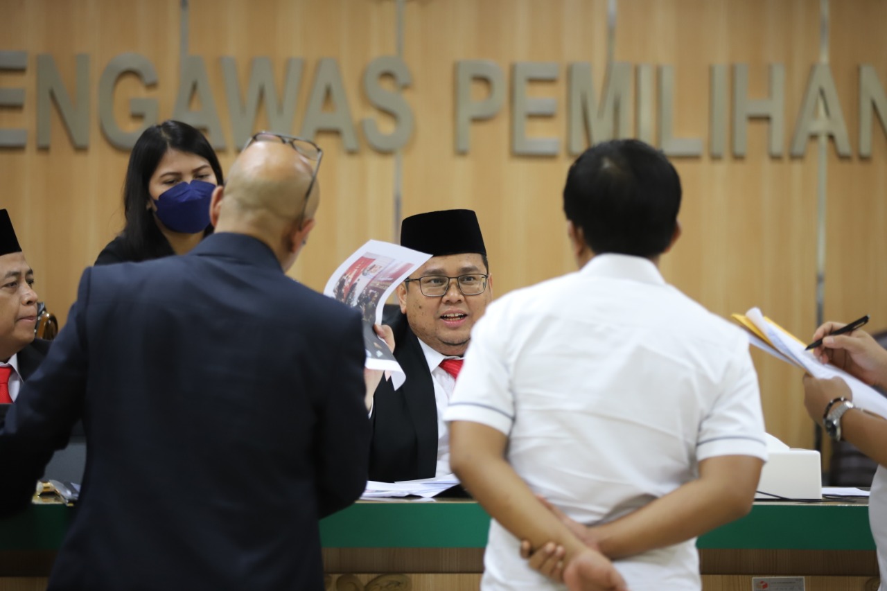 Jakarta, Badan Pengawas Pemilihan Umum –Bawaslu melakukan sidang pemeriksaaan lanjutan atas laporan dugaan pelanggaran adminitrasi yang diajukan Partai Kedaulatan Rakyat dengan nomor 006/LP/PL/ADM/RI/00.00/VIII/2022 dan Partai Kongres yang diajukan Partai Kongres dengan nomor laporan 007/LP/PL/ADM/RI/00.00/VIII/2022. Agenda sidang kali ini pemeriksaan saksi dengan mendengar keterangan tujuh saksi dari Partai Kedaulatan Rakyat yang terdiri lima saksi fakta dan dua saksi ahli. Sedangkan Partai Kongres hanya mengadirkan dua saksi fakta. Di pihak terlapor yakni KPU RI sendiri tak menghadirkan saksi fakta maupun saksi ahli.