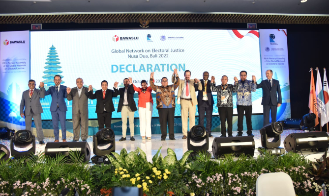 Pada 11 Oktober 2022, 38 peserta dari otoritas elektoral dan yudikatif dari 24 negara, 1 pakar pemilu independen, 11 perwakilan dari 9 organisasi internasional dan 10 pakar dari 9 institusi akademik berkumpul di Indonesia untuk menghadiri Sidang Umum ke-5 Jaringan Global untuk Keadilan Pemilu. (GNEJ) untuk menegakkan komitmen mereka terhadap penguatan mekanisme pemilihan yang adil, yang berfungsi sebagai pilar kepercayaan dan akuntabilitas yang penting.