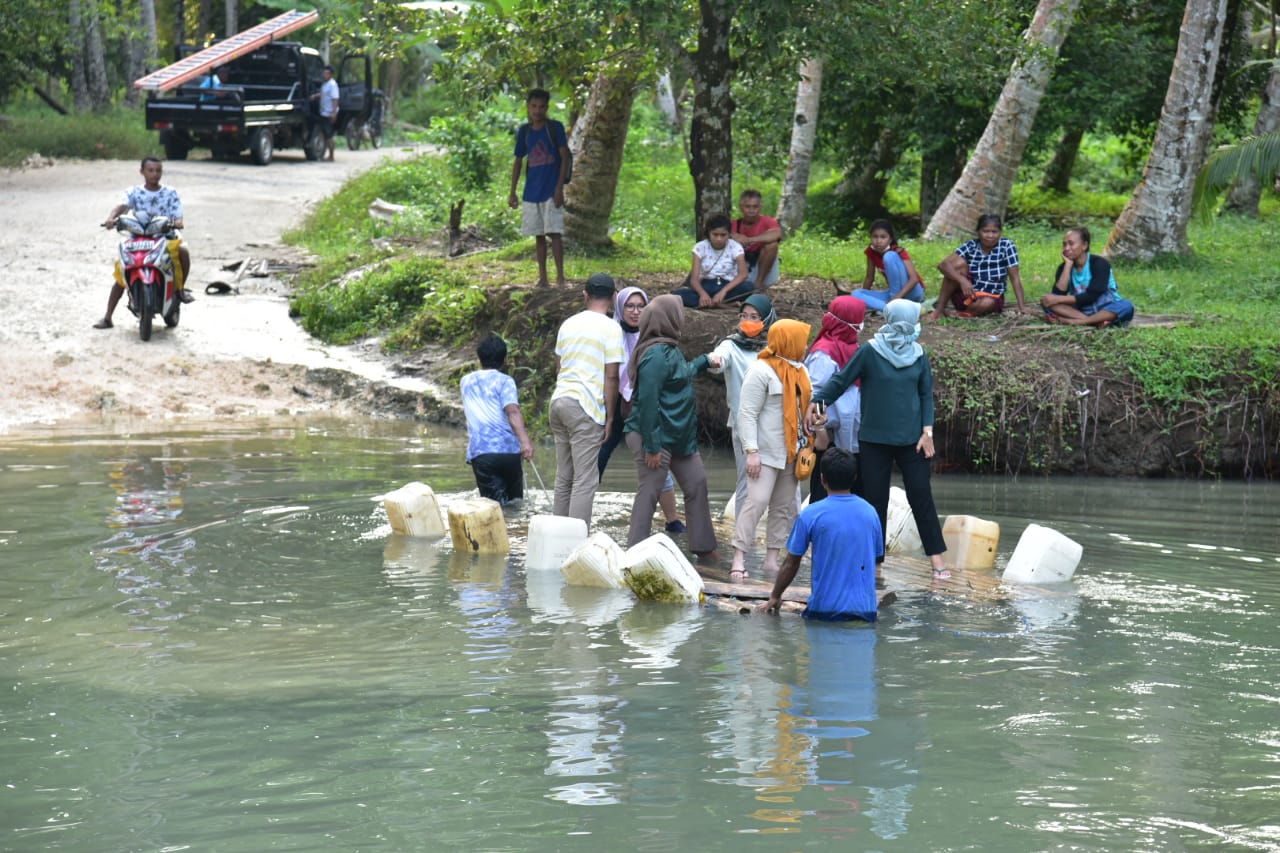 Untuk mencapai tempat ini tidak mudah. Rombongan menempuh 4 jam perjalanan dari Tobelo. Bahkan, terdapat jalan yang terputus. Nyaris tidak bisa dilintasi oleh kendaraan bermotor dan harus menyebrangi sungai.