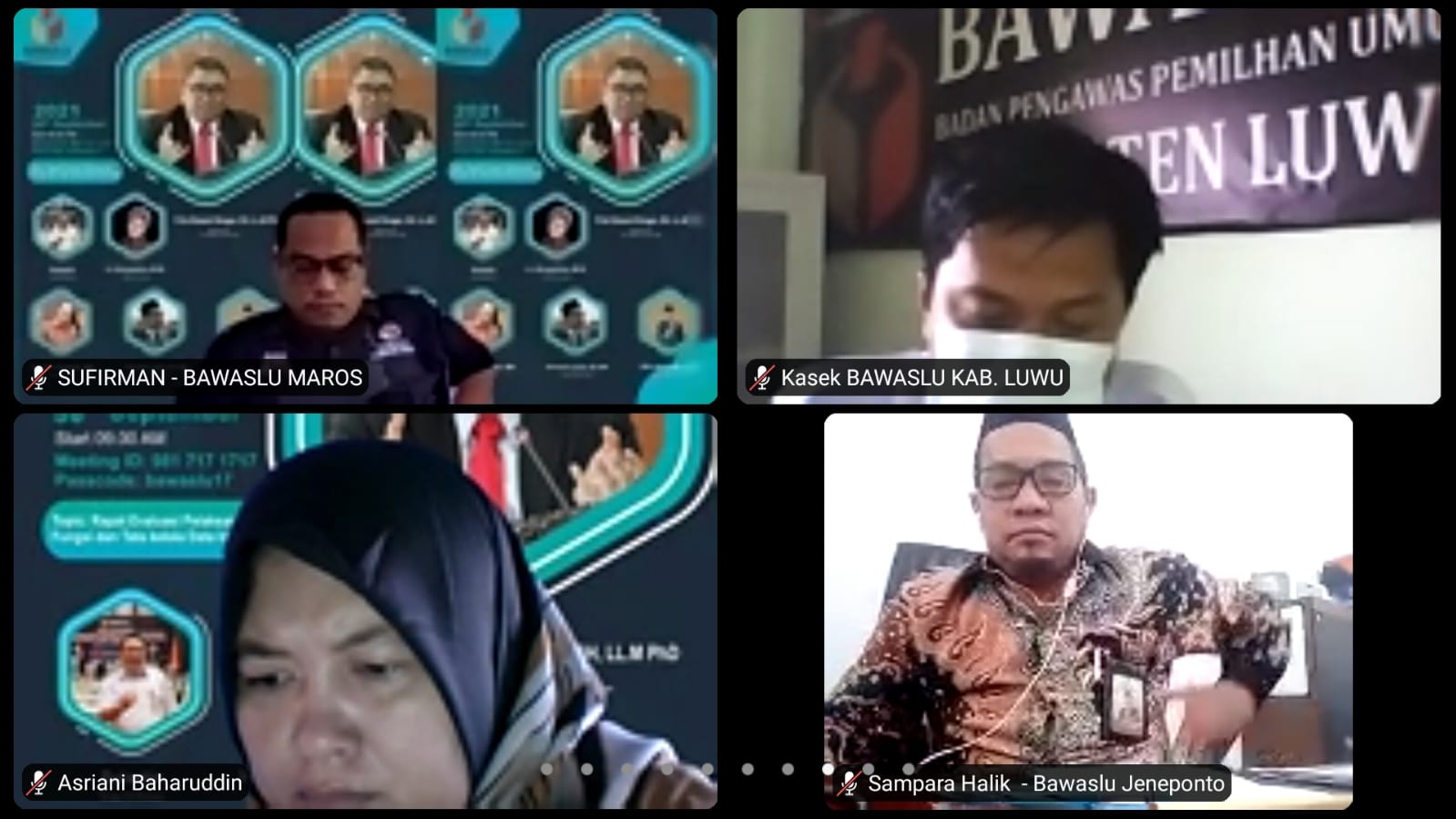 Tangkapan layar Rapat Evaluasi Pelaksanaan Fungsi dan Tata Kelola Data dan Informasi via daring yang digelar oleh Bawaslu Provinsi Sulawesi Selatan, Kamis 30 September 2021/Foto: Pemberitaan dan Publikasi Bawaslu RI
