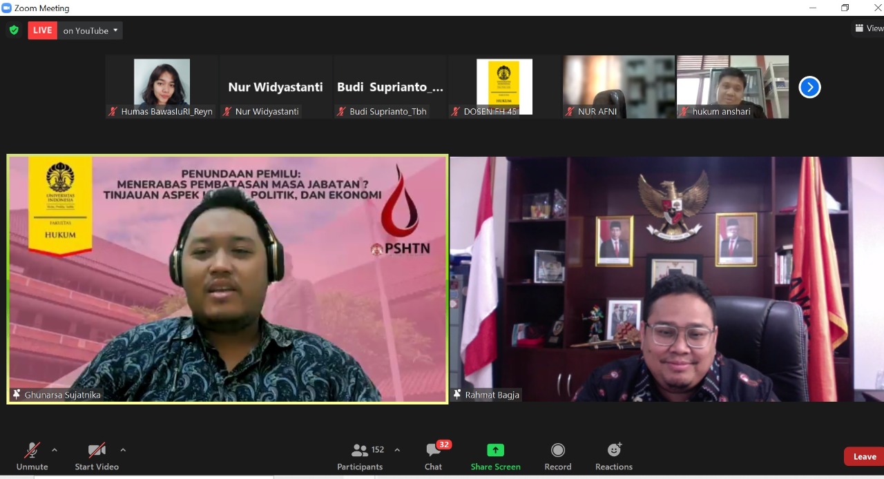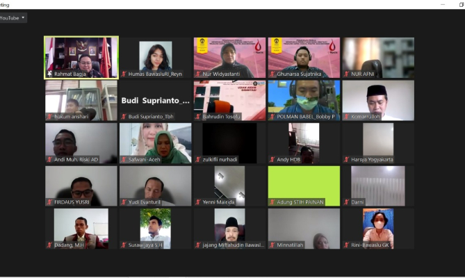 Koordinator Divisi Penyelesaian Sengketa Bawaslu Rahmat Bagja (kanan) memberikan paparan dalam Webinar yang digelar Fakultas Hukum Universitas Indonesia, Rabu (9/3/2022)/foto: Publikasi dan Pemberitaan Bawaslu