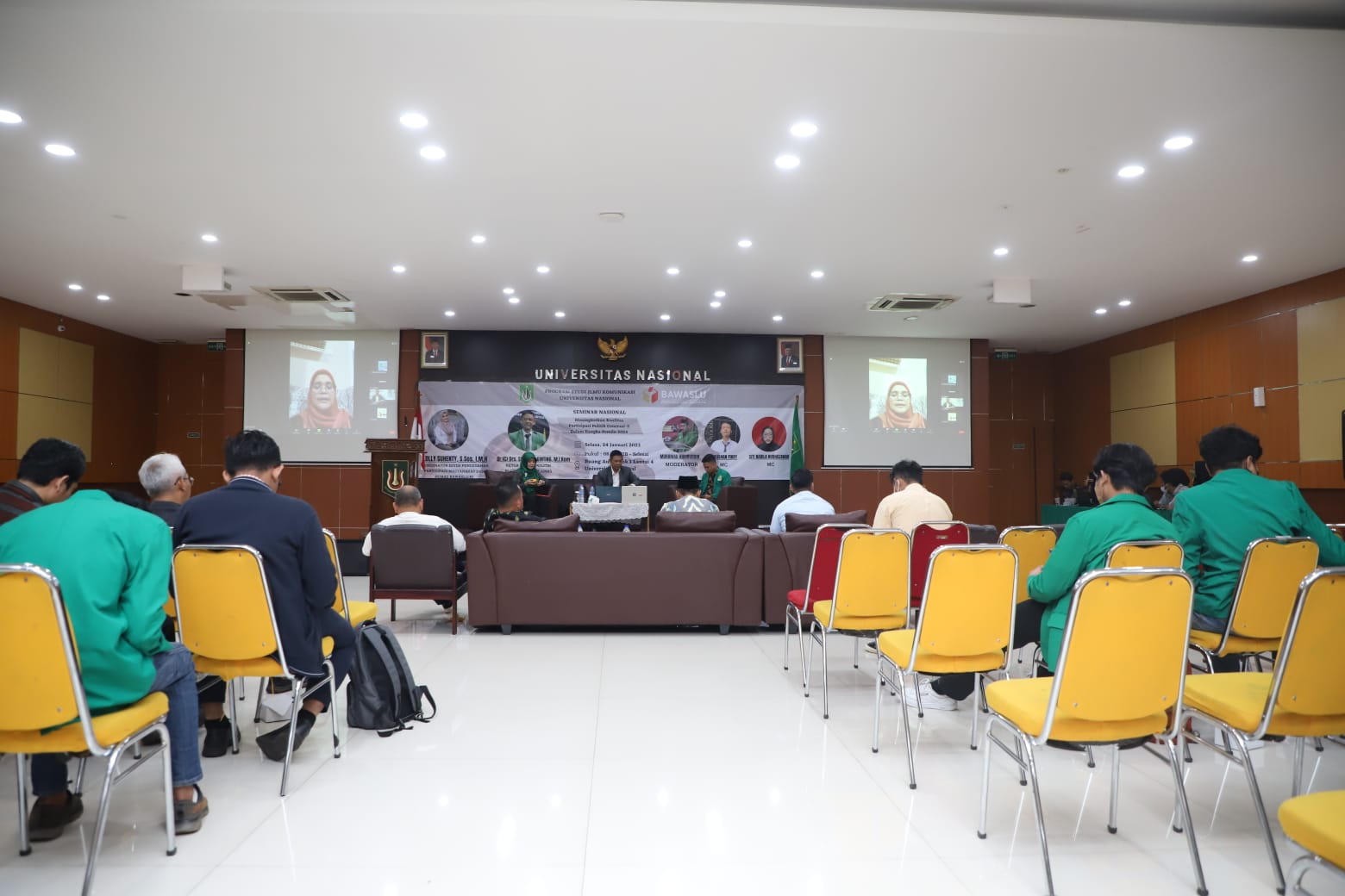 Jakarta, Badan Pengawas Pemilihan Umum - Anggota Bawaslu Lolly Suhenty mengharapkan mahasiswa Universitas Nasional (Unas) menjadi aktor dalam dunia pemilu, bukan hanya menjadi penonton. Aktor yang dimaksudnya beragam caranya, bisa menjadi pengawas partisipatif, penyelenggara pemilu, maupun aktif dalam pemantau pemilu.