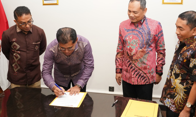Jakarta, Badan Pengawas Pemilihan Umum – Bawaslu Kabupaten Bone Bolango menerima hibah gedung dan bangunan dari Pemerintah Kabupaten Bone Bolango. Sekertaris Jenderal Bawaslu Ichsan Fuady dan Sekertaris Daerah Iwan Mustofa melakukan tanda tangan atas sertifikat tanda bukti hak di gedung Bawaslu, Jakarta, Kamis (30/10/2025).