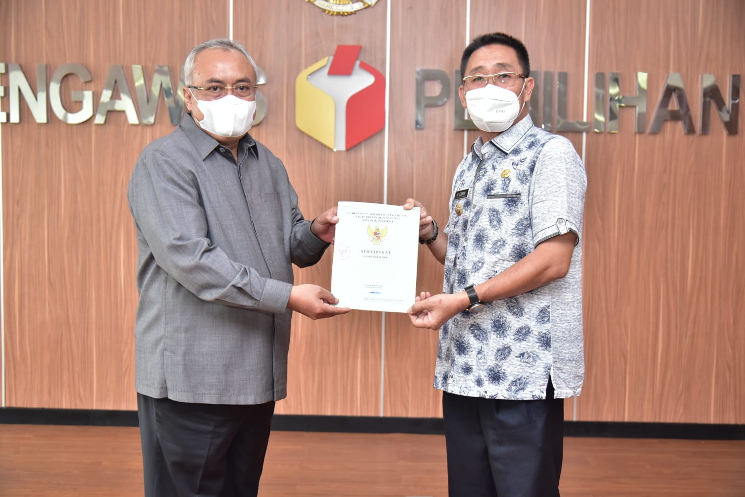 Jakarta, Badan Pengawas Pemilihan Umum – Bawaslu Kabupaten Labuhan Batu Selatan (Labusel) menerima hibah tanah dari Pemerintah Daerah Labusel. Proses serah terima diwakili oleh Sekretaris Jenderal (Sekjen) Bawaslu Gunawan Suswantoro dari Bupati Labusel Edimin di Gedung Bawaslu RI, Senin, (20/12/2021).
