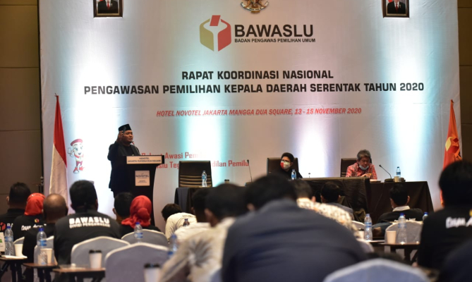 Anggota Bawaslu M Afifuddin saat memberikan pengarahan dalam Rakornas Gelombang Tiga di Jakarta, Minggu 15 November 2020/Foto: Humas Bawaslu RI