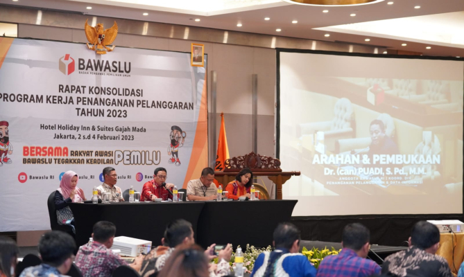 Sebelumnya Kepala Biro Fasilitasi Penanganan Pelanggaran Yusti Erlina menjelaskan konsolidasi program kerja penanganan pelanggaran tahun anggaran 2023 yang dilaksanakan pada tanggal 2 s,d 4 Februari 2023, dilaksanakan untuk mendiskusikan program kerja penanganan pelanggaran di Bawaslu RI, Bawaslu Provinsi, dan Bawaslu Kabupaten/Kota.