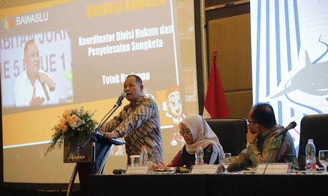 Surabaya, Badan Pengawas Pemilihan Umum - Anggota Bawaslu Totok Hariyono menegaskan penyelesaikan sengketa proses di Pemilihan 2024 harus lebih baik dari Pemilu 2024. Sebab ada yang berbeda dalam menyelesaikannya contohnya proses mediasi.