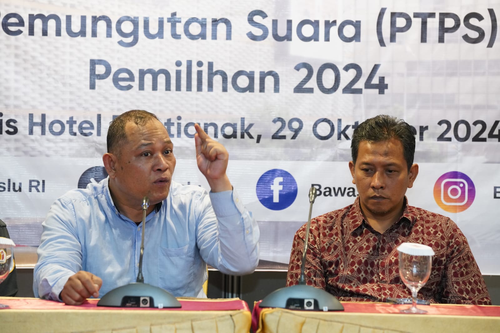 Pontianak, Badan Pengawas Pemilihan Umum - Anggota Bawaslu Totok Hariyono perintahkan seluruh jajaran Bawaslu Provinsi, Kabupaten/Kota di Kalimantan Barat harus tegas dalam melakukan pengawasan. Pengawas Tempat Pemungutan Suara (PTPS) harus berani menegakan aturan seperti netralitas Aparatur Sipil Negara (ASN), TNI dan Polri serta pemasangan Alat Peraga Kampanye (APK) pada Pemilihan 2024.