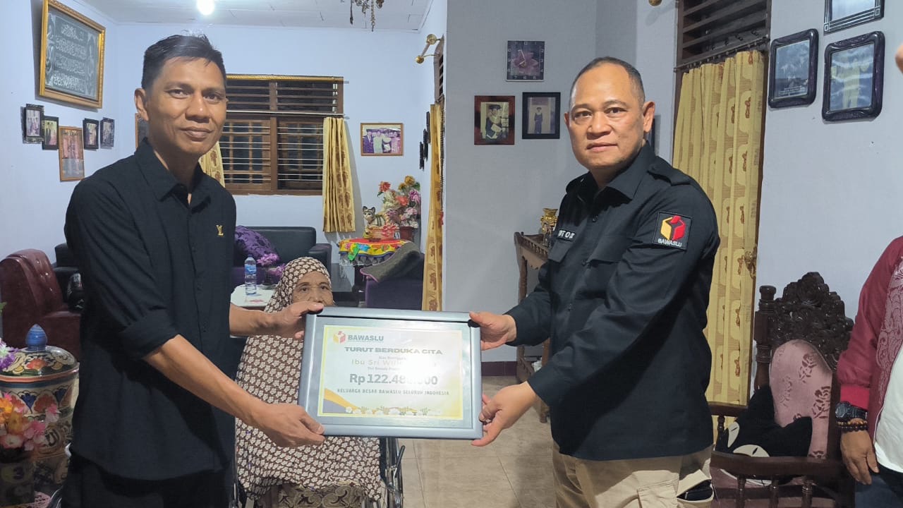 Totok menjelaskan bahwa dana kerahiman tersebut merupakan bentuk sumbangan tali asih dari seluruh jajaran keluarga besar Bawaslu se-Indonesia, berdasarkan Surat Edaran Ketua Bawaslu RI Nomor 77 Tahun 2024 tentang Dana Kerahiman.