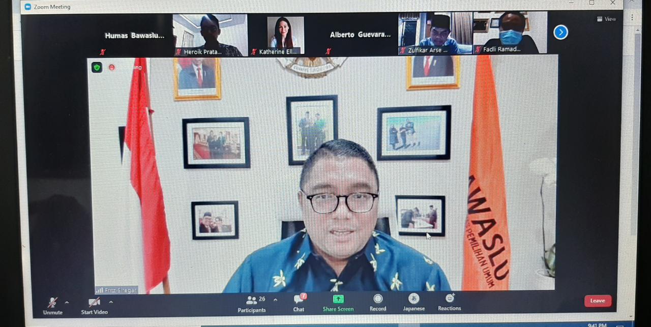 Anggota Bawaslu Fritz Edward Siregar saat menjadi pembicara dalam Webinar yang digelar Perkumpulan untuk Pemilu dan Demokrasi (Perludem) di Jakarta, Kamis (17/12/2020) malam/Foto: Jaa Pradana (Humas Bawaslu RI).