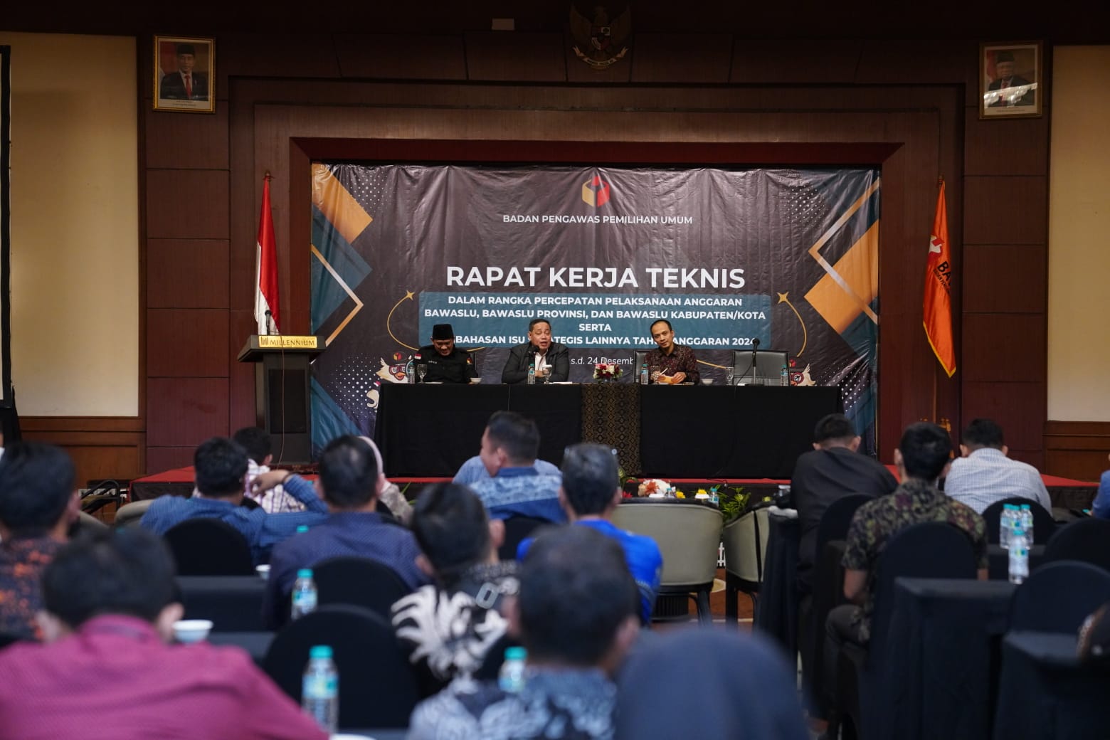Anggota Bawaslu Herwyn Malonda (tengah) saat memberikan arahan Rapat Kerja Teknis Percepatan Pelaksanaan Anggaran Bawaslu di Jakarta, Rabu (20/12/2023).
