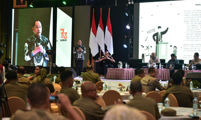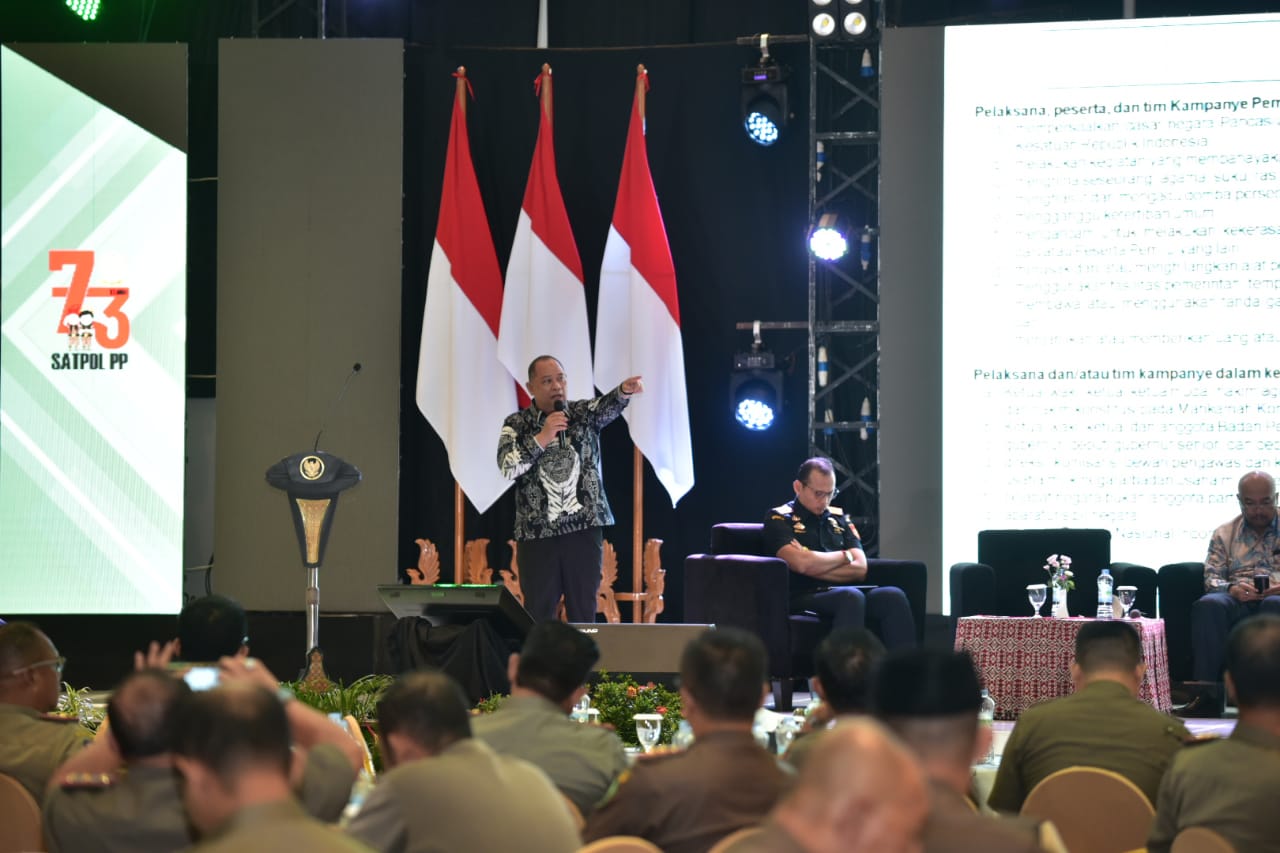 Makassar, Badan Pengawas Pemilihan Umum - Anggota Bawaslu Totok Hariyono tegaskan Satuan Polisi Pamong Praja (Satpol PP) selalu membantu Bawaslu dalam menertibkan Alat Peraga Kampanye (APK). Hal ini disampaikan pada kegiatan Rapat Kerja Nasional Satuan Polisi Pamong Praja Tahun 2023 dan Upacara Gelar Pasukan Satpol PP dan Satlinmas.