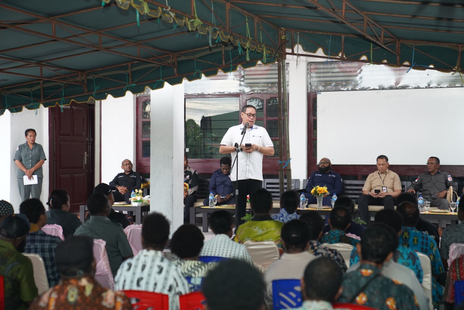 Anggota Bawaslu Herwyn JH Malonda saat memberikan arahan kepada 15 Panwascam Distrik di Kabupaten Nabire, Selasa (6/8/2024).