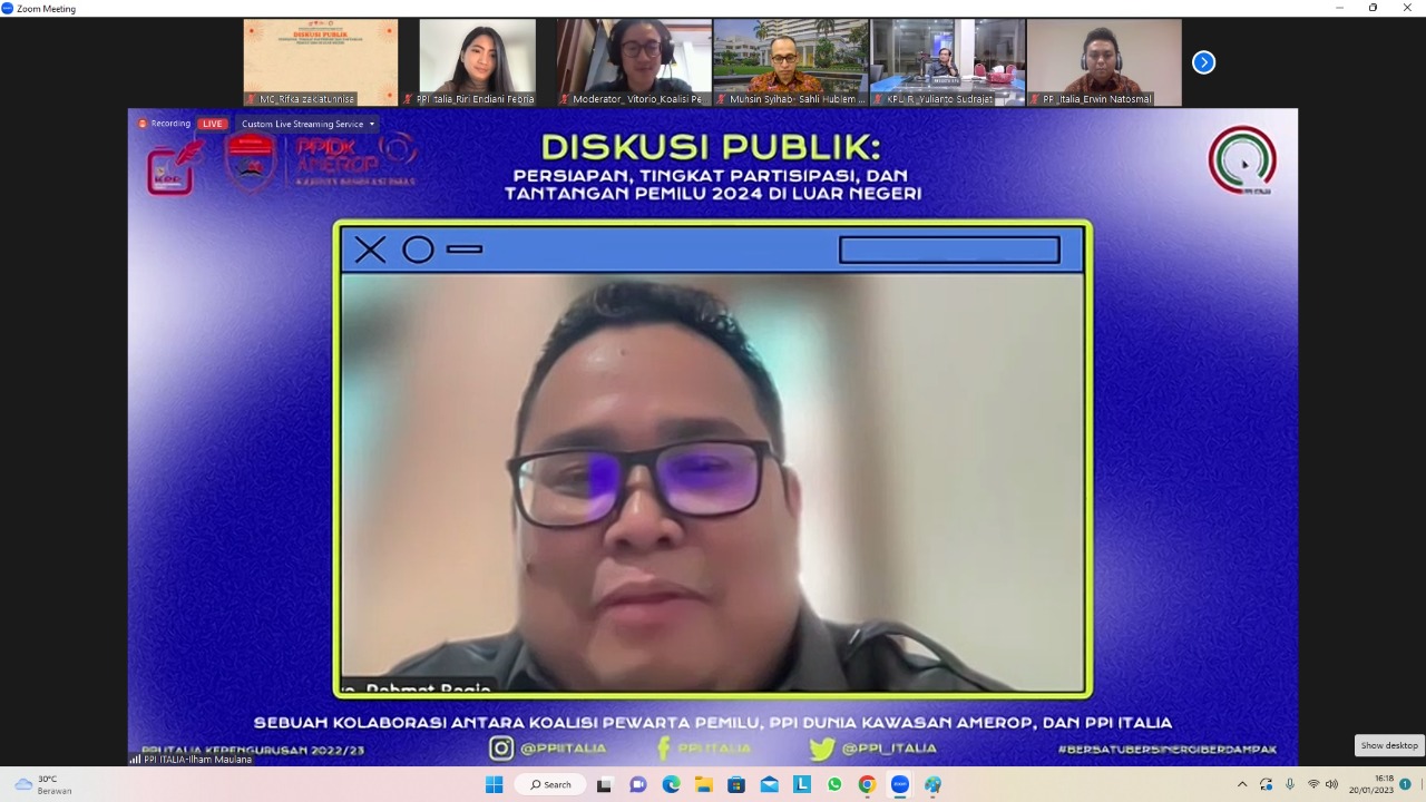 Perlu diketahui, dalam acara ini hadir pula Anggota KPU Yulianto Sudrajat, Staf Ahli Bidang Hubungan Antar Lembaga Kemlu, Muhsin Syihab Ketua Umum PPI Italia Riri Endiani Febri, dan peserta dari PPI Italia dan Koalisi Pewarta Pemilu.