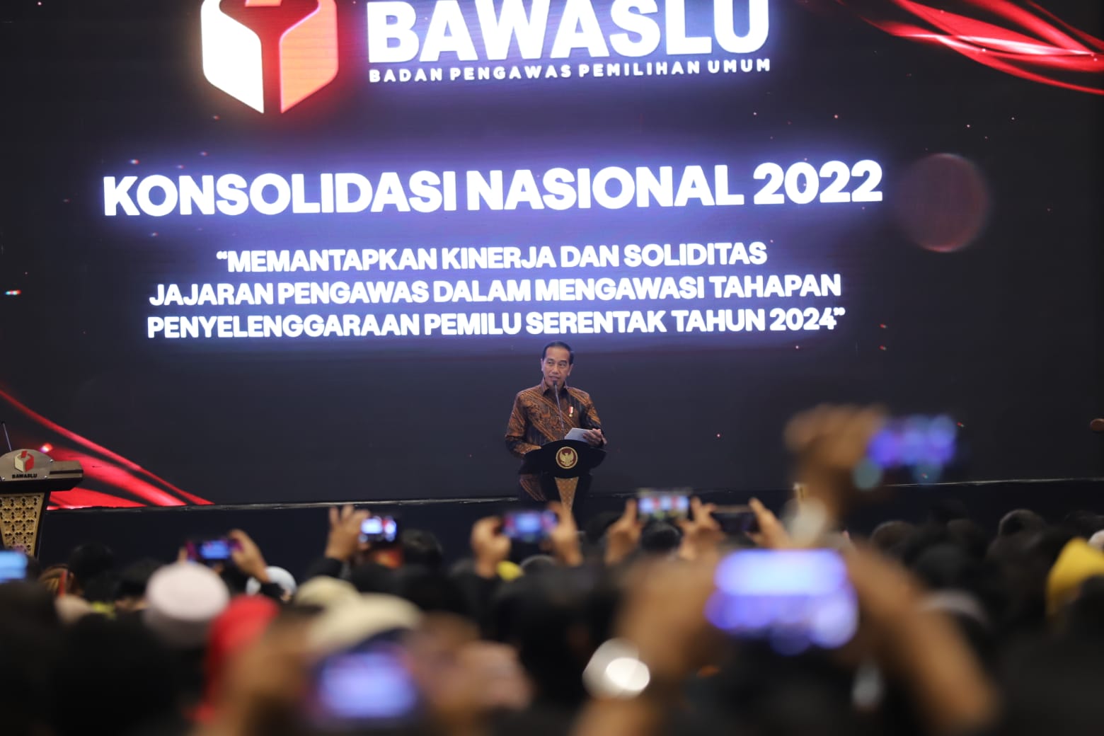 Presiden Joko Widodo hadiri Konsolidasi Nasional (Konsolnas) Bawaslu, Sabtu (17/12/2022).