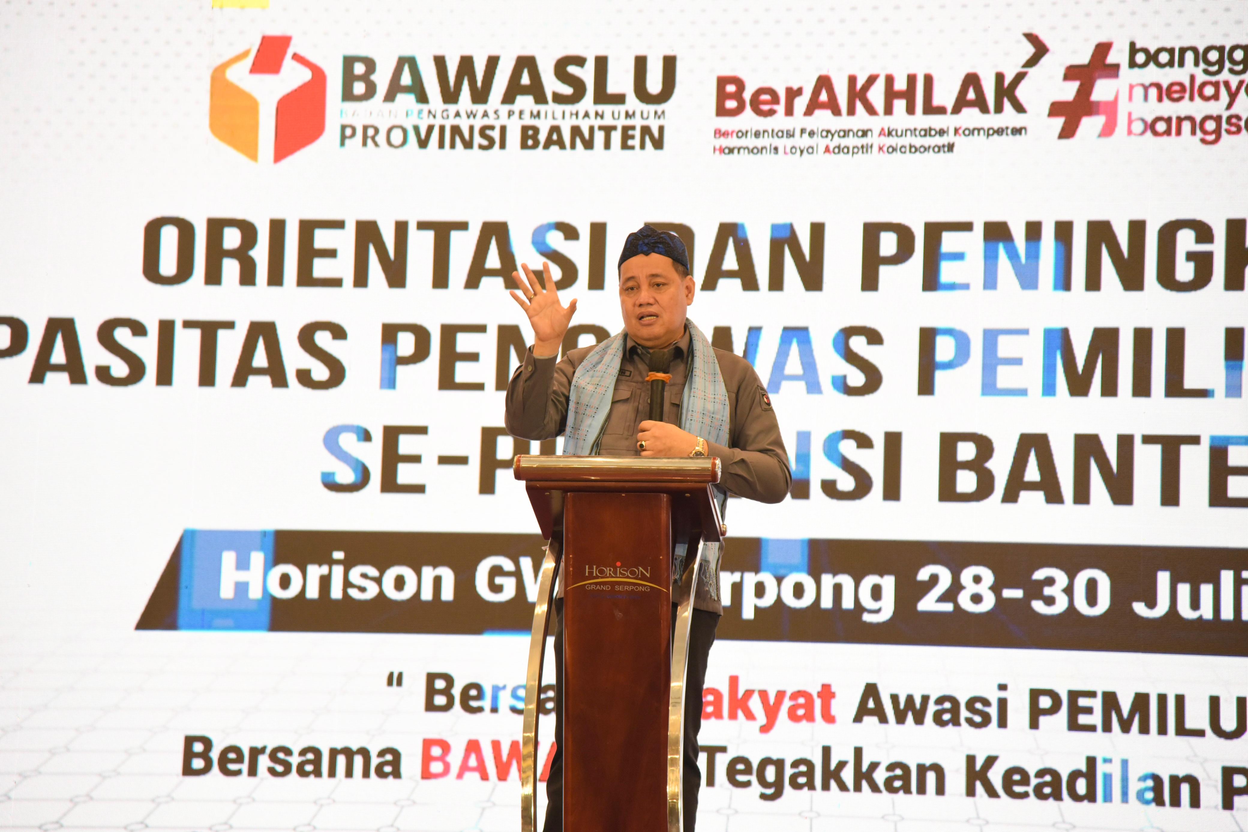 “Kenapa kita (Panwascam) harus ada, karena untuk memastikan keadilan pemilu sesuai tagline pemilu kita. Bukan pekerjaan mudah memang, dalam upaya mencegah dan menindak pelaku kecurangan dan pelanggaran dalam pemilihan,” tegasnya di hadapan Pengawas Kecamatan (Panwascam) se-Provinsi Banten, dalam Orientasi dan Peningkatan Kapasitas Pengawas Pemilihan Ad Hoc Se-Provinsi Banten, Minggu (28/7/2024).