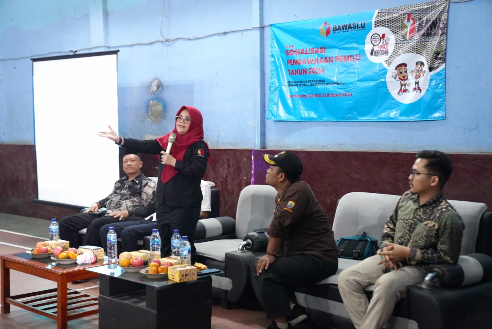Sumedang, Badan Pengawas Pemilihan Umum - Anggota Bawaslu Lolly Suhenty mengajak pemuda dan masyarakat desa ikut menjadi mata yang turut mengawasi Pemilu 2024. Pasalnya, kata dia, dalam kacamata pengawas pemilu seluruh tahapan pemilu penuh kerawanan.