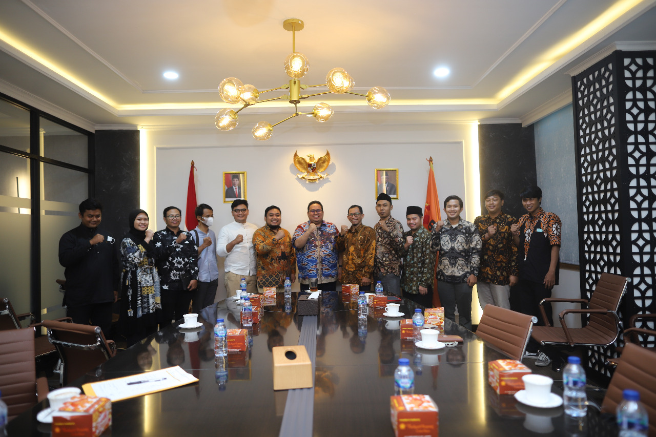 Ketua Bawaslu Rahmat Bagja (tengah) bersama Pengurus Pusat Perhimpunan Remaja Masjid Dewan Masjid Indonesia (PP PRIMA DMI), di Kantor Bawaslu, Jakarta, Kamis (19/01/2023).