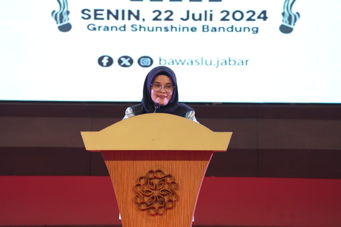 Anggota Bawaslu Lolly Suhenty dalam Launching Pemetaan Kerawanan Pemilihan Serentak 2024 di Provinsi Jawa Barat, Senin malam, (22/7/2024).
