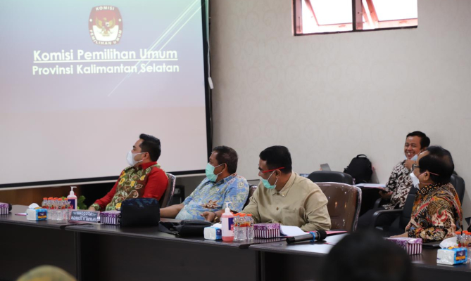 Rapat Panja Komisi II DPR RI dilaksanakan di Aula Terbuka KPU Kalsel berjalan dengan lancar serta menerapkan Protokol Kesehatan Covid-19. Rombongan Rapat Panja Komisi II DPR RI yang dilaksanakan di Aula Terbuka KPU Kalsel dihadiri oleh rombongan Komisi II DPR RI yang diketuai oleh Saan Mustopa dari Fraksi Partai Nasdem,  Deputi Administrasi KPU RI Purwoto Ruslan Hidayat, Bawaslu RI Fritz Edward Siregar,  Anggota Gakkumdu Kalsel dan Kabupaten/Kota yang mengadakan PSU seperti Kota Banjarmasin, Kabupaten Banjar dan Kabupaten Tapin.