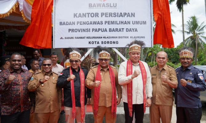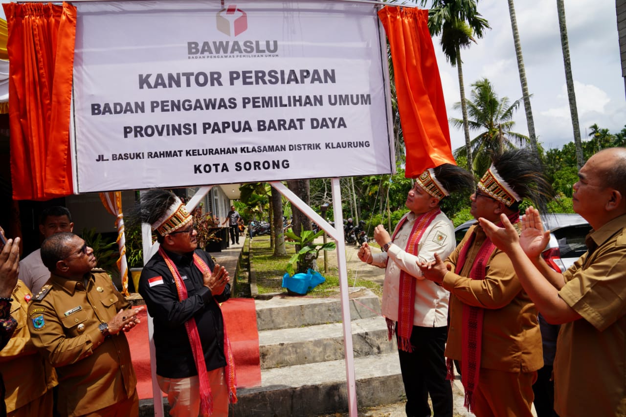Sorong, Badan Pengawas Pemilihan Umum- Bawaslu resmikan Kantor Persiapan Bawaslu Provinsi Barat Daya, Senin (9/1/2023). Kantor tersebut diresmikan oleh Anggota Bawaslu Herwyn J. H Malonda dan disaksikan Penjabat Gubernur Papua Barat Daya Muhammad Musa'ad.