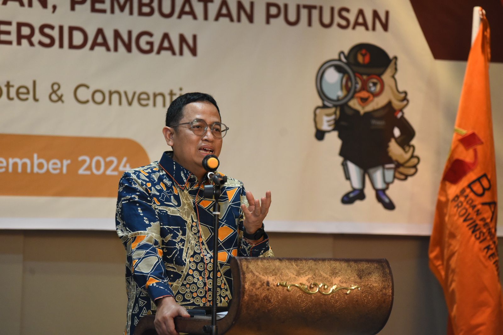 Anggota Bawaslu Puadi dalam Pelatihan Penerimaan Laporan Pembuatan Putusan dan Tata Cara Persidangan yang digelar Bawaslu Kepulauan Riau, di Batam, Sabtu (14/9/2024).