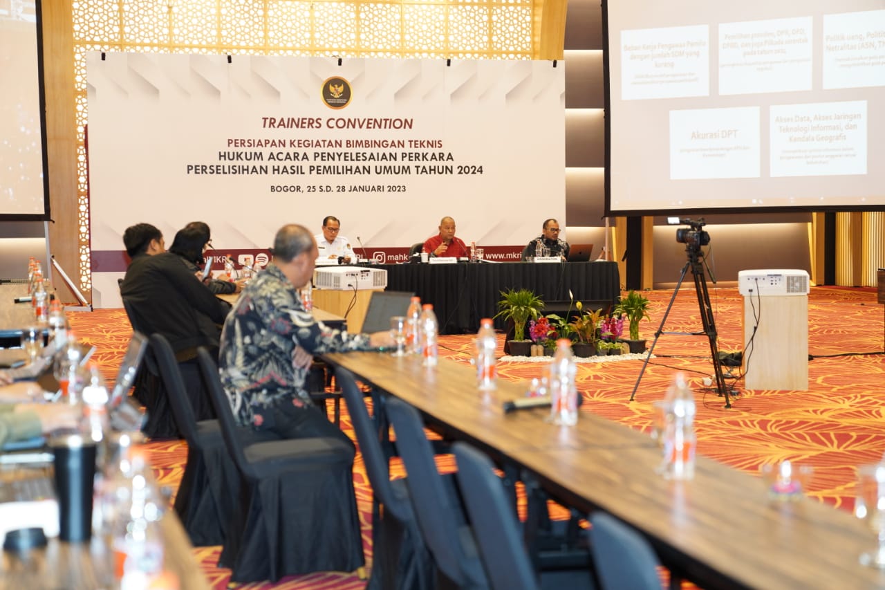 Anggota Bawaslu Totok Hariyono menjadi narasumber trainers convention Persiapan Kegiatan Bimbingan Teknis Hukum Acara Penyelesaian Perkara Perselisihan Hasil Pemilihan Umum (PHPU) Tahun 2024 yang diselenggarakan Mahkamah Konsitusi (MK) di Bogor Jawa Barat. Totok menjelaskan bagaiamana konstruksi tugas Bawaslu dan kaitannya dengan PHPU.